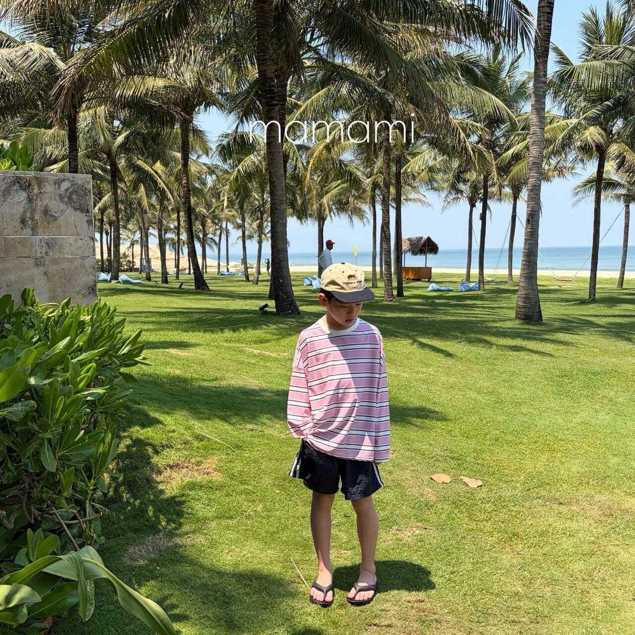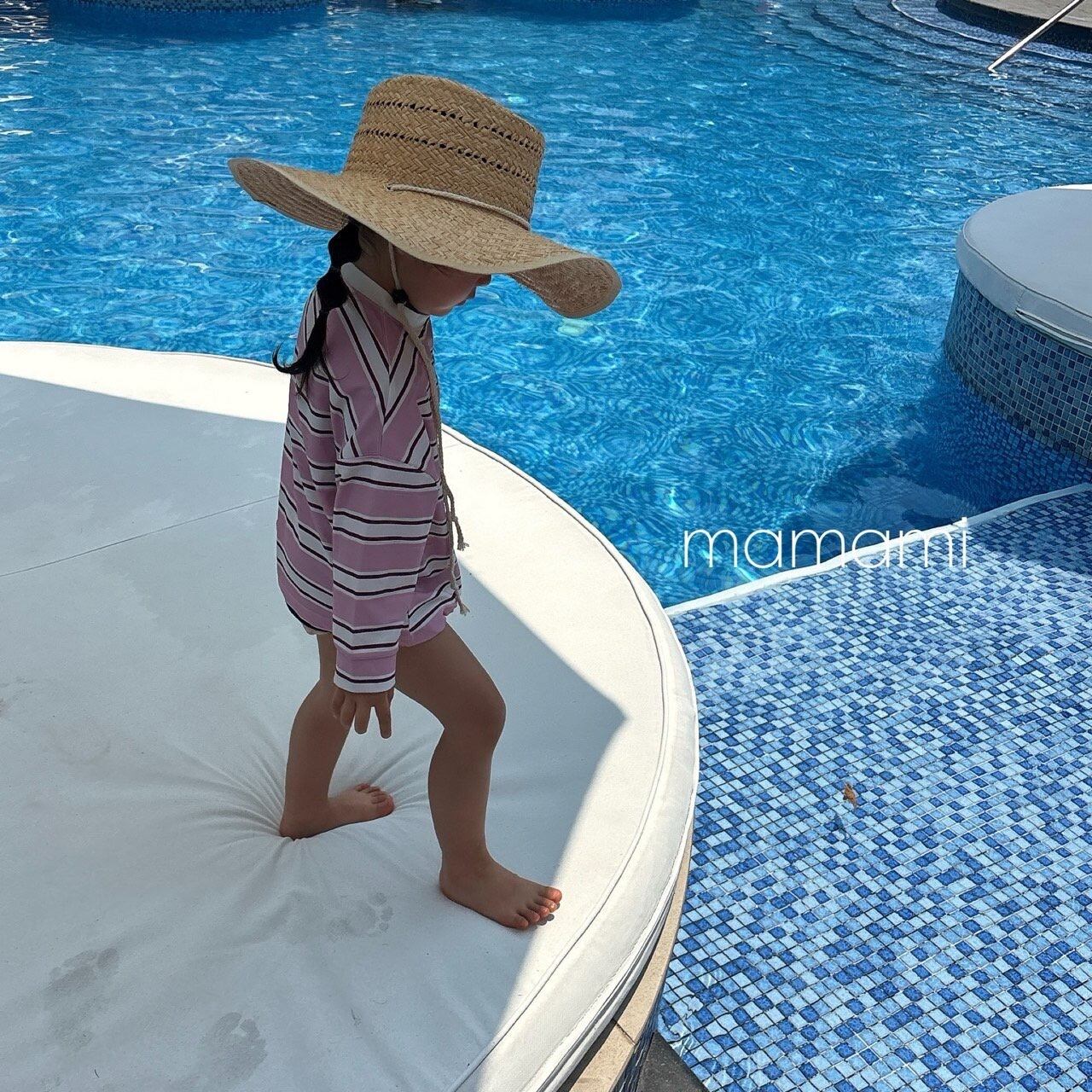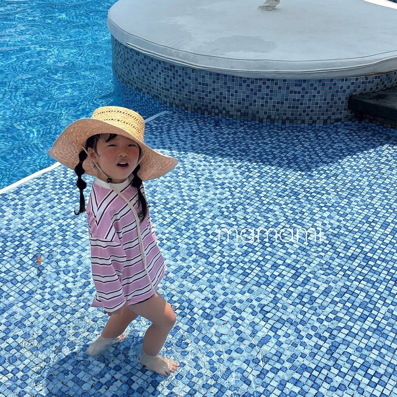 柔らかなサンドトーンカラーと穏やかなストライプ柄が融合し、過剰にならずに感覚的な雰囲気を演出し、水遊びだけでなく日常でも自然に調和し、活用度の高いサマーアイテムです。