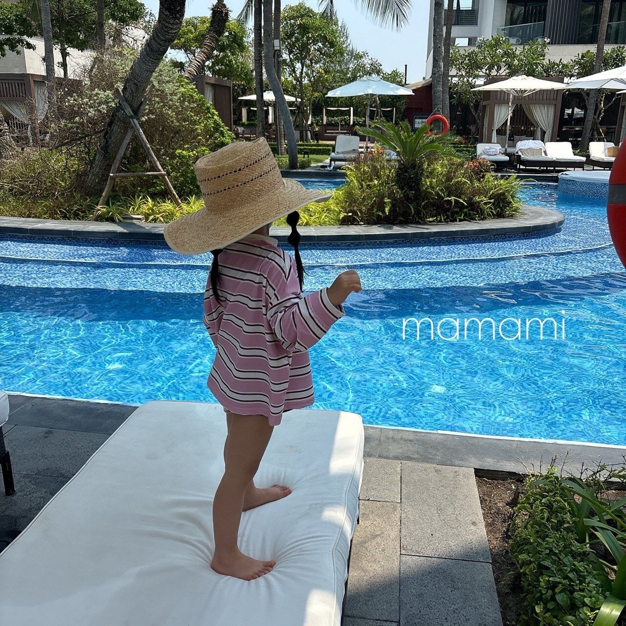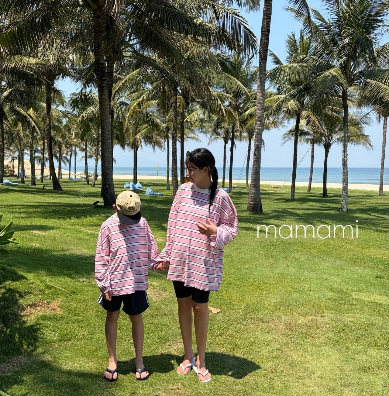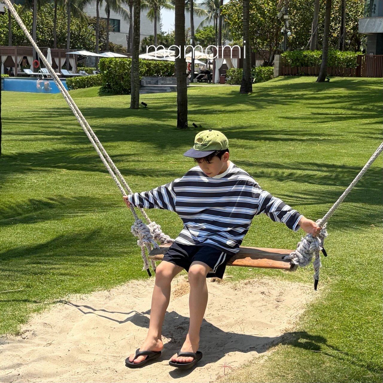 柔らかなサンドトーンカラーと穏やかなストライプ柄が融合し、過剰にならずに感覚的な雰囲気を演出し、水遊びだけでなく日常でも自然に調和し、活用度の高いサマーアイテムです。