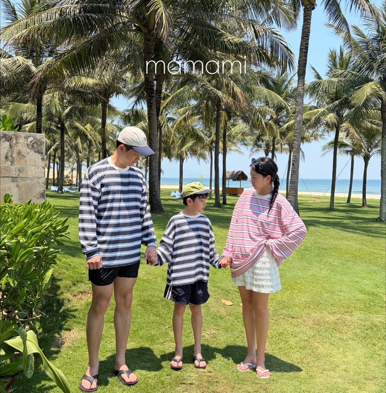 軽くて柔軟なスイム素材と余裕のあるルーズフィットシルエットで、子どもからお母さん、お父さんまで一緒に着やすい快適なファミリールックに仕上げます。